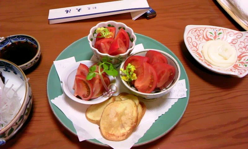 あらかじめトマトが好物であることを伝えてありましたので、娘の前には沢山トマトが出てきて喜んでいました。