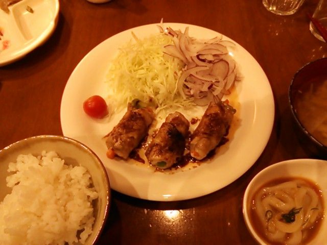 野菜を豚肉で巻いて焼きました。